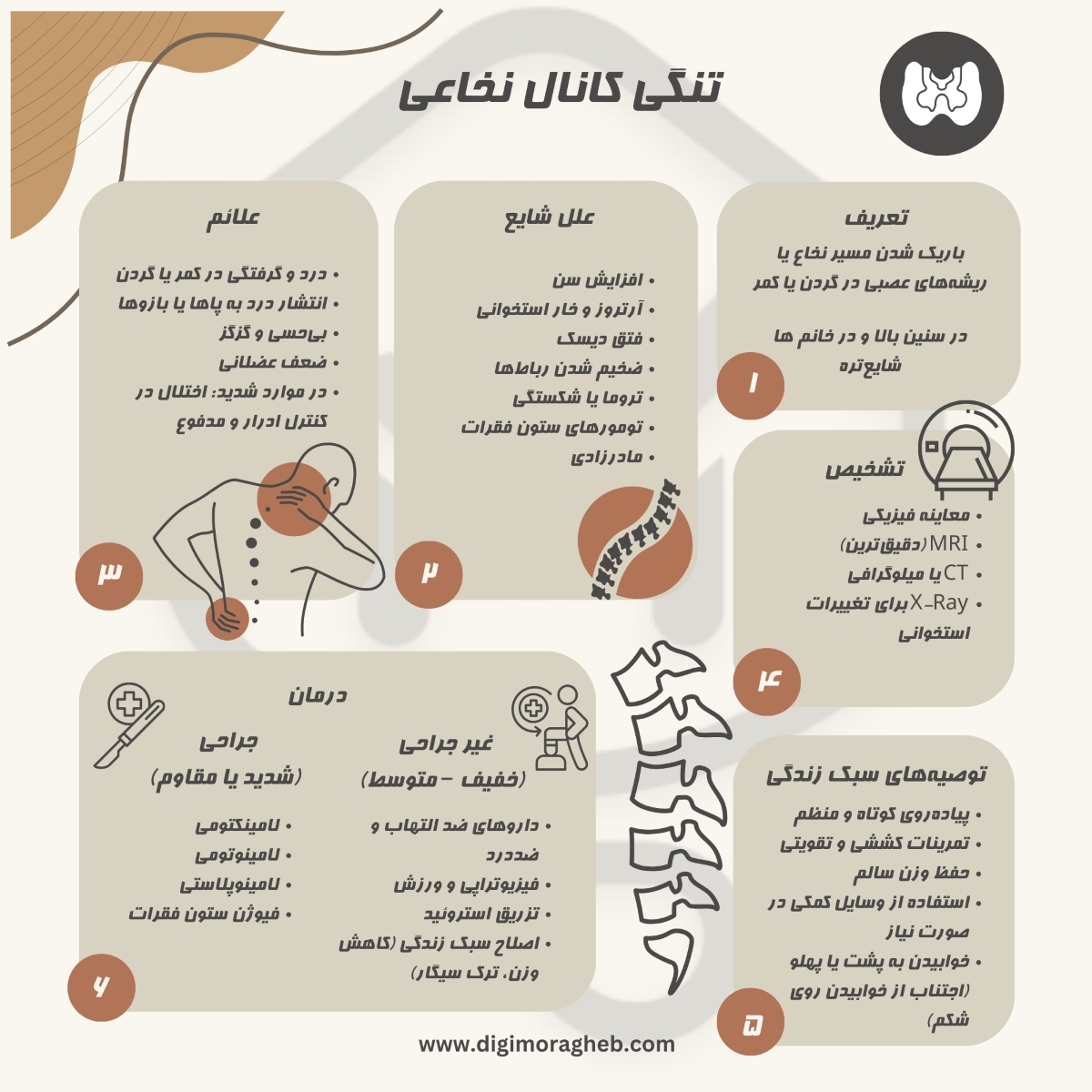 - لامینکتومی: برداشتن قسمتی از مهره برای آزادسازی عصب (منبع: AAOS Guidelines).